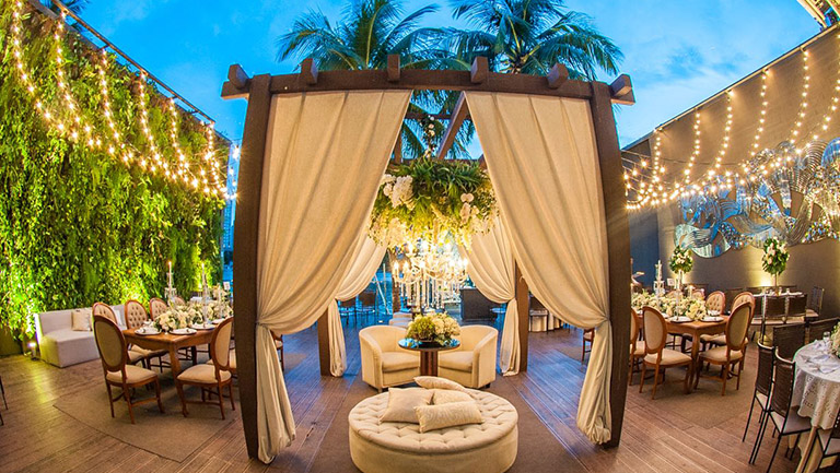 Outro grande destaque é o Jardim Vertical de 9 metros de altura que compreende todo o Deck até o Canal, sem falar na maior Obra de Arte da Renomada Artista Ana Paula Castro, desenvolvida exclusivamente para o Le Buffet Lounge é sem dúvida uma das maiores atrações do Espaço.